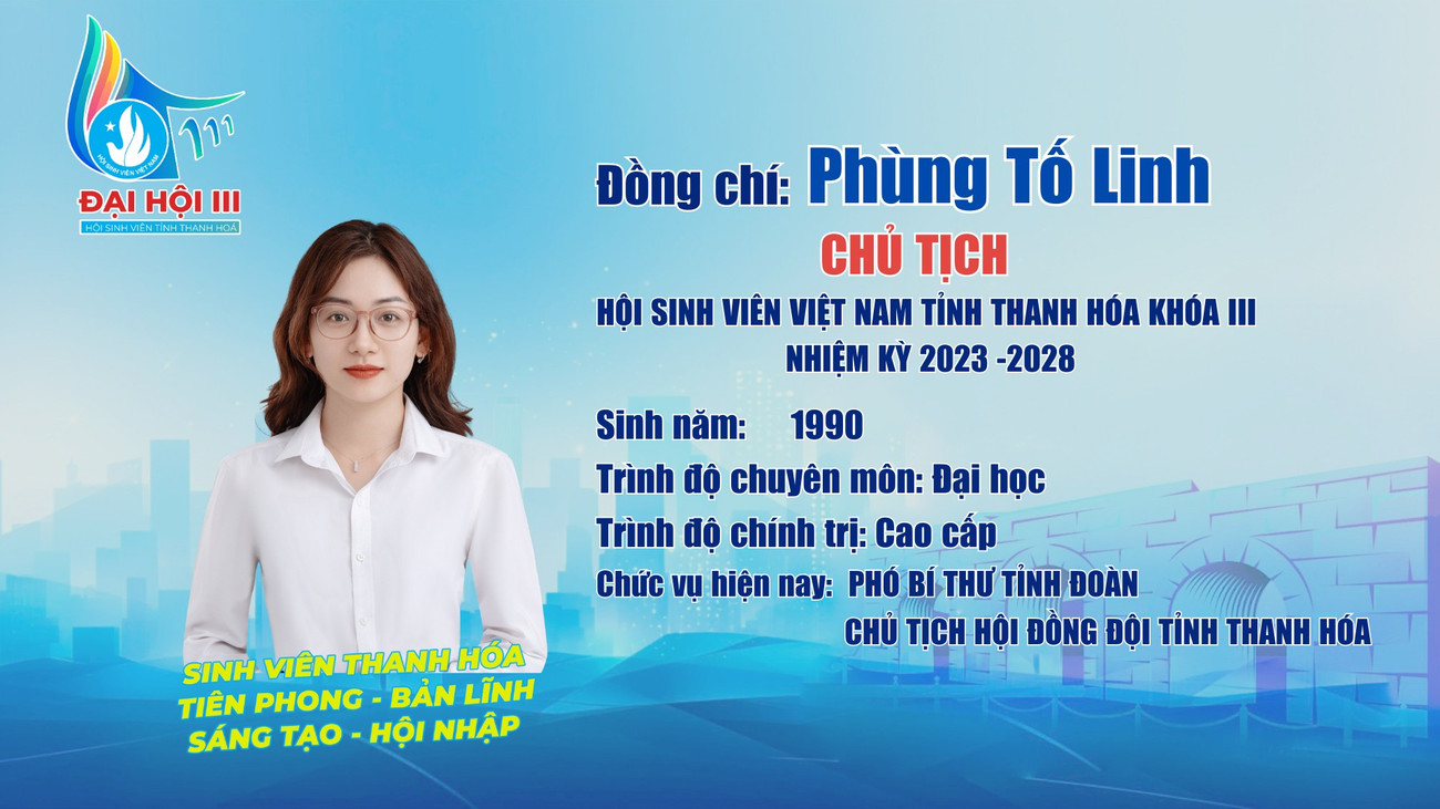 SVO - Hội nghị Ban Chấp hành Hội Sinh viên tỉnh Thanh Hoá khoá III, lần thứ nhất đã hiệp thương bầu 7 anh, chị tham gia Ban Thư ký; hiệp thương bầu chị Phùng Tố Linh giữ chức danh Chủ tịch Hội Sinh viên tỉnh, nhiệm kỳ mới.