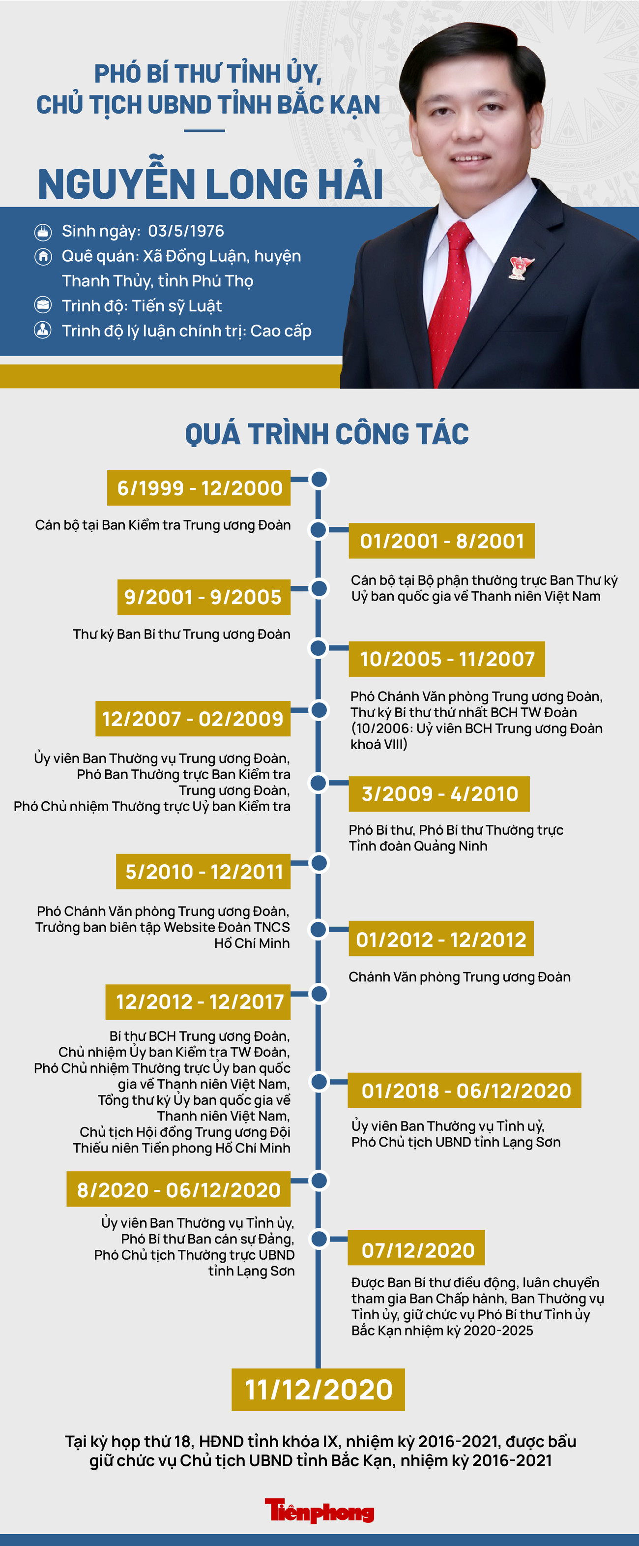 TPO - Ngày 11/12/2020, tại kỳ họp thứ 18, HĐND tỉnh khóa IX, nhiệm kỳ 2016-2021, ông Nguyễn Long Hải được bầu giữ chức vụ Chủ tịch UBND tỉnh Bắc Kạn, nhiệm kỳ 2016-2021