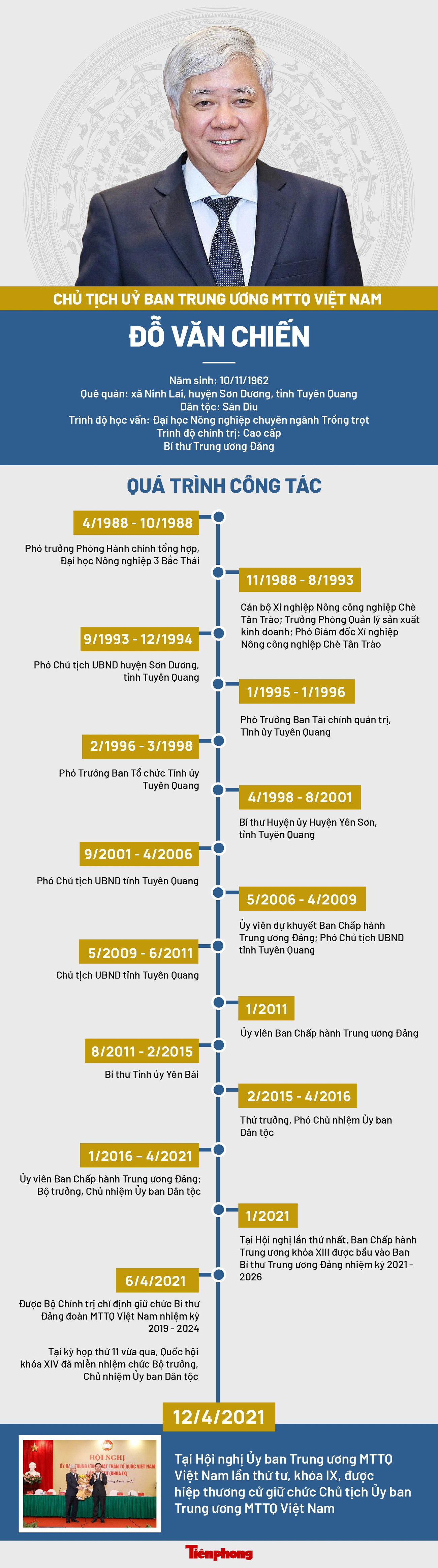 TPO - Ngày 12/4 tại Hội nghị lần thứ tư, khóa IX, Ủy ban Trung ương MTTQ Việt Nam đã hiệp thương cử ông Đỗ Văn Chiến, Bí thư Trung ương Đảng, Bí thư Đảng đoàn MTTQ Việt Nam, giữ chức Chủ tịch Ủy ban Trung ương MTTQ Việt Nam khóa IX, nhiệm kỳ 2019-2024.