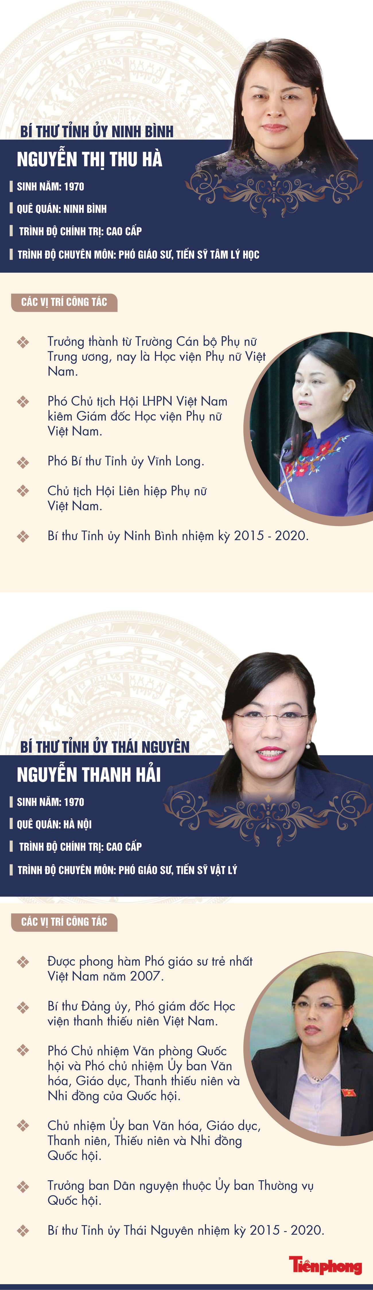 TPO - Cả hai nữ Bí thư Tỉnh ủy vừa được Bộ Chính trị điều động, phân công đều sinh năm 1970, hiện đang là Uỷ viên Trung ương Đảng, đại biểu Quốc hội.