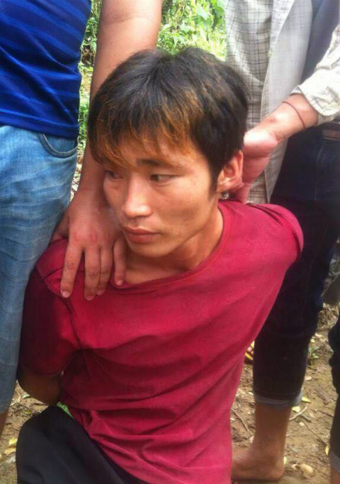 Hùng khi bị bắt trong rừng. Ảnh: Công an huyện Văn Yên cung cấp.