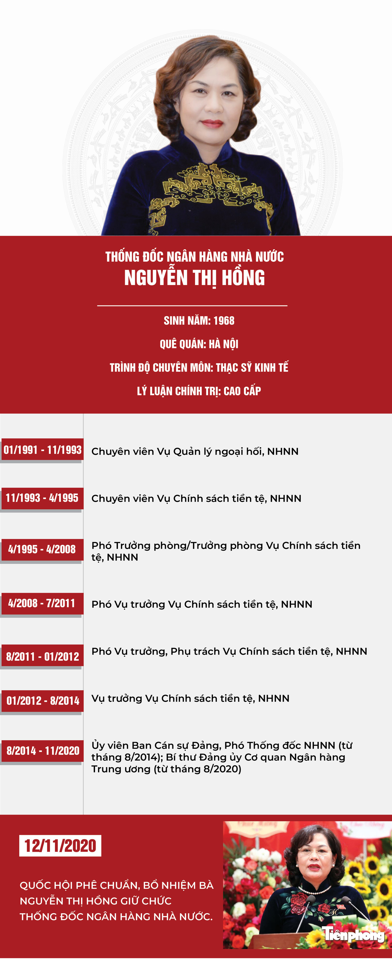TPO - Ngày 12/11, Quốc hội phê chuẩn, bổ nhiệm bà Nguyễn Thị Hồng giữ chức Thống đốc Ngân hàng Nhà nước. Bà Hồng là nữ thống đốc Ngân hàng Nhà nước đầu tiên của Việt Nam.