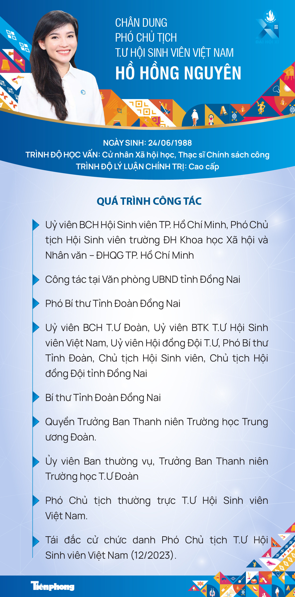 SVO - Chị Hồ Hồng Nguyên - Trưởng Ban Thanh niên Trường học T.Ư Đoàn, Phó Chủ tịch thường trực T.Ư Hội Sinh viên Việt Nam khoá X, vừa được hiệp thương bầu tái đắc cử chức danh Phó Chủ tịch T.Ư Hội Sinh viên Việt Nam khoá XI, nhiệm kỳ 2023 - 2028.
