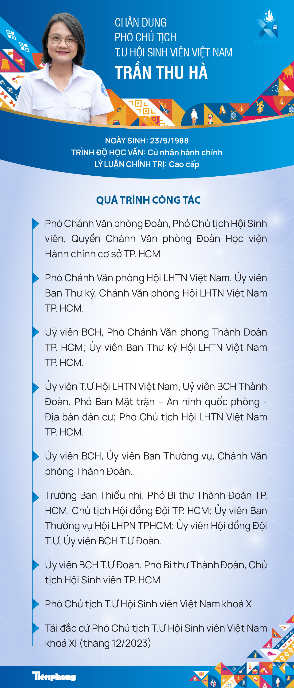 TPO - Tại Hội nghị lần thứ nhất Ban Chấp hành T.Ư Hội Sinh viên Việt Nam lần thứ XI, nhiệm kỳ 2023 – 2028, chị Trần Thu Hà được tín nhiệm bầu giữ chức danh Phó Chủ tịch T.Ư Hội Sinh viên Việt Nam.
