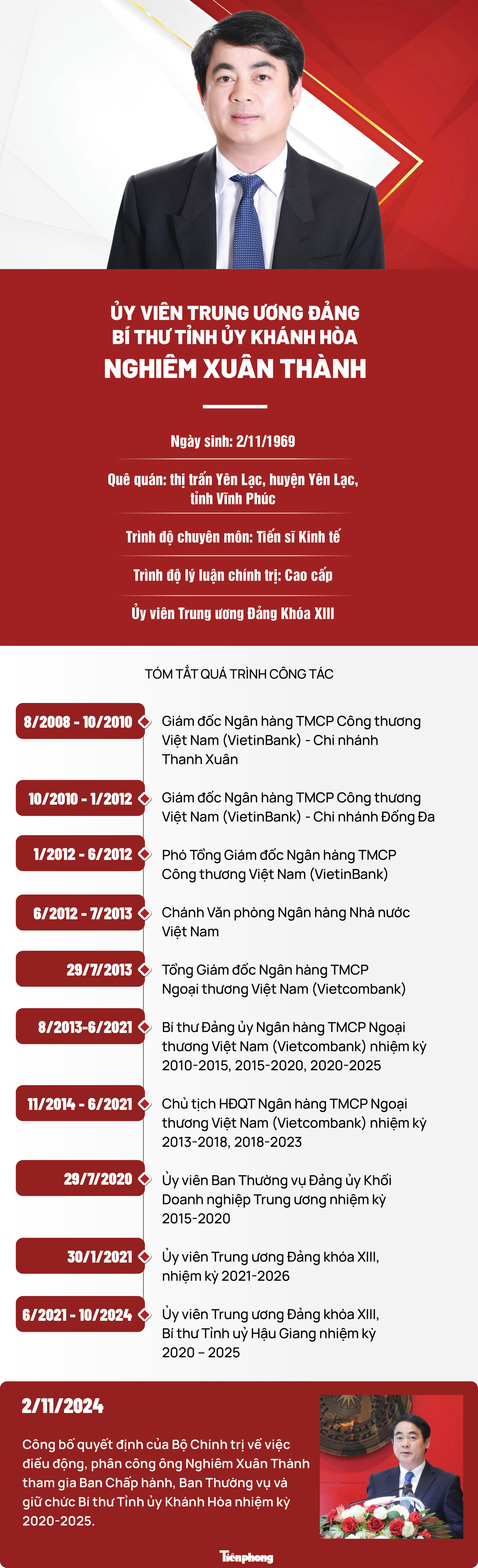 TPO - Bộ Chính trị điều động, phân công, chỉ định ông Nghiêm Xuân Thành tham gia Ban Chấp hành, Ban Thường vụ và giữ chức Bí thư Tỉnh ủy Khánh Hòa nhiệm kỳ 2020 - 2025.
