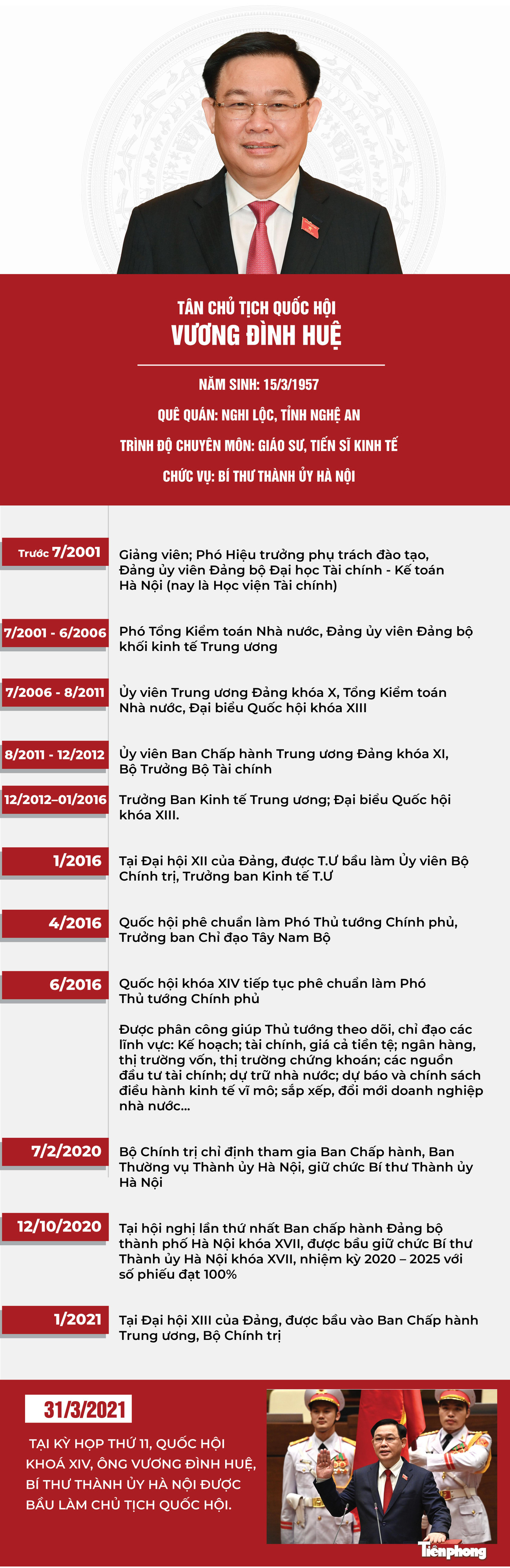 Ngày 31/3, tại kỳ họp thứ 11, Quốc hội khoá XIV, ông Vương Đình Huệ, Bí thư Thành ủy Hà Nội được bầu làm Chủ tịch Quốc hội.
