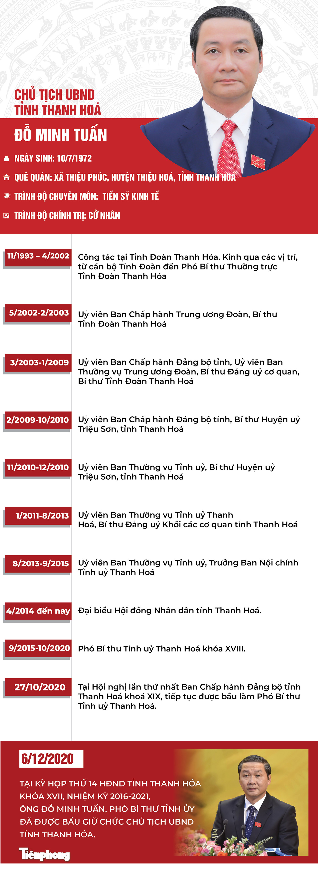 TPO - Chiều 6/12, tại kỳ họp thứ 14 HĐND tỉnh Thanh Hóa khóa XVII, nhiệm kỳ 2016-2021, ông Đỗ Minh Tuấn, Phó Bí thư Tỉnh ủy đã được bầu giữ chức Chủ tịch UBND tỉnh Thanh Hóa.