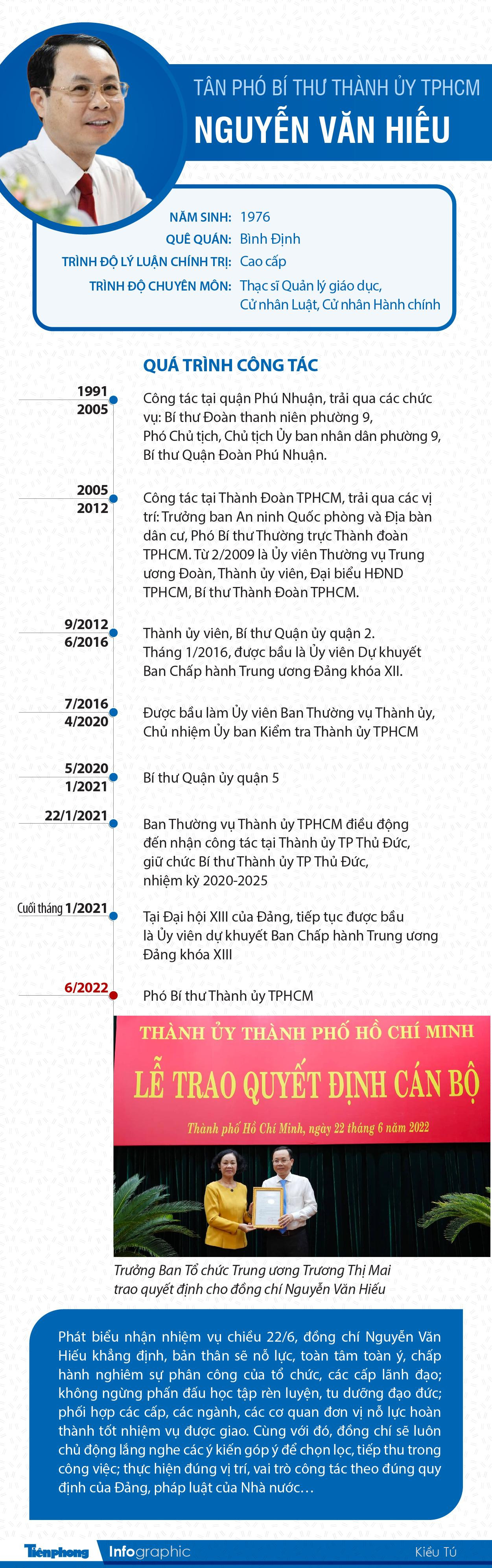 TPO - Ông Nguyễn Văn Hiếu, Ủy viên dự khuyết Trung ương Đảng, Ủy viên Ban Thường vụ Thành ủy TPHCM, Bí thư Thành ủy TP Thủ Đức giữ chức Phó bí thư Thành ủy TPHCM nhiệm kỳ 2020-2025.