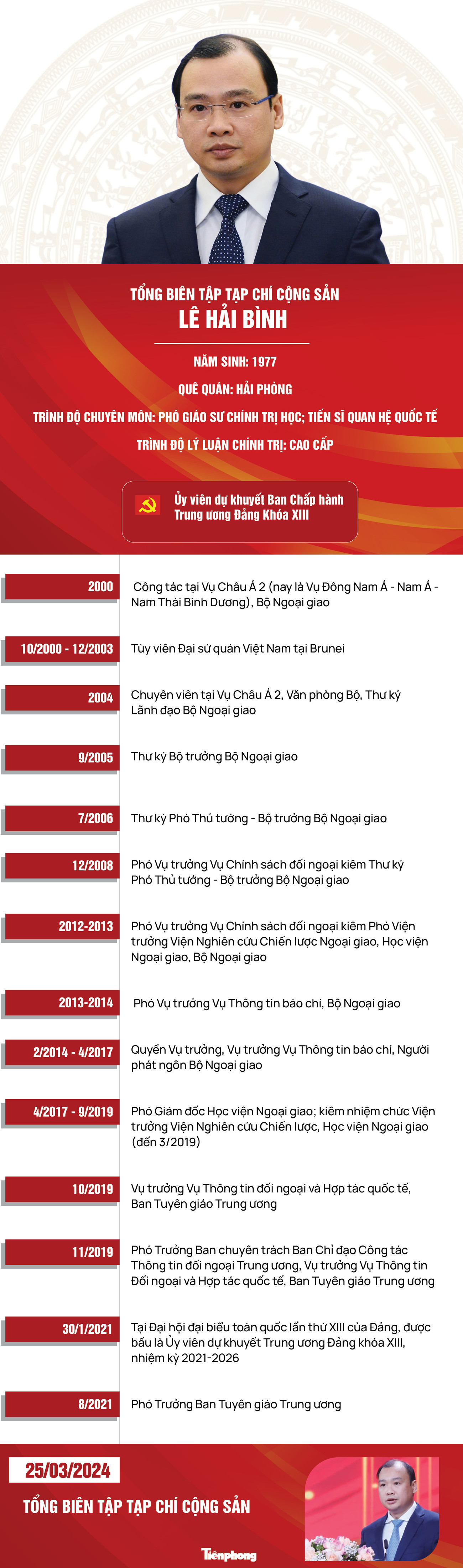 TPO - Ngày 25/3, Tạp chí Cộng sản tổ chức Hội nghị công bố Quyết định của Bộ Chính trị về việc điều động, bổ nhiệm ông Lê Hải Bình, Ủy viên dự khuyết Trung ương Đảng, Phó Trưởng Ban Tuyên giáo Trung ương, giữ chức vụ Tổng Biên tập Tạp chí Cộng sản.