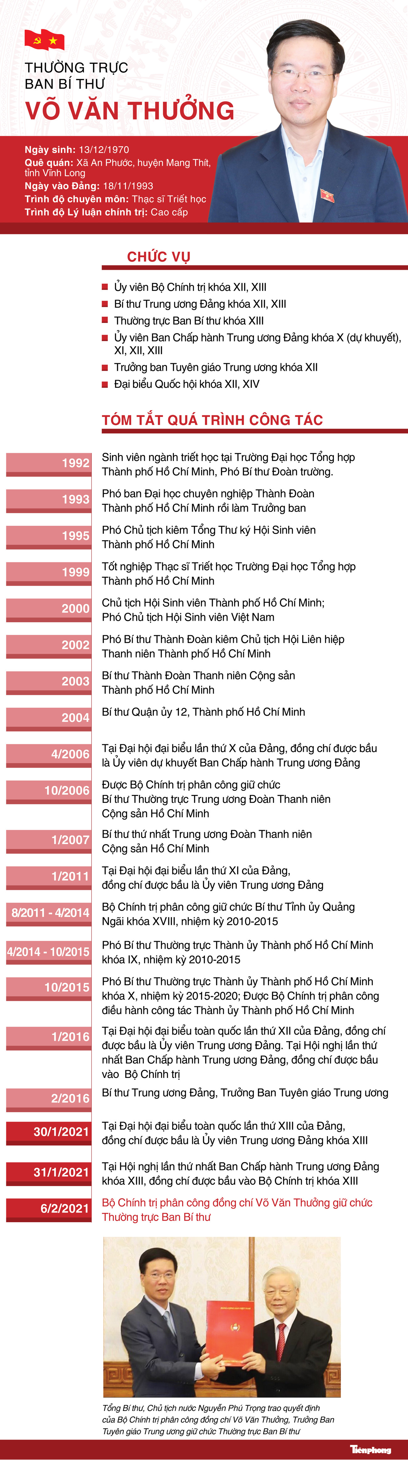 TPO - Tại Quyết định số 01-QĐNS/TW ngày 5/2, Bộ Chính trị phân công ông Võ Văn Thưởng, Ủy viên Bộ Chính trị, Trưởng ban Tuyên giáo T.Ư, giữ chức Thường trực Ban Bí thư.