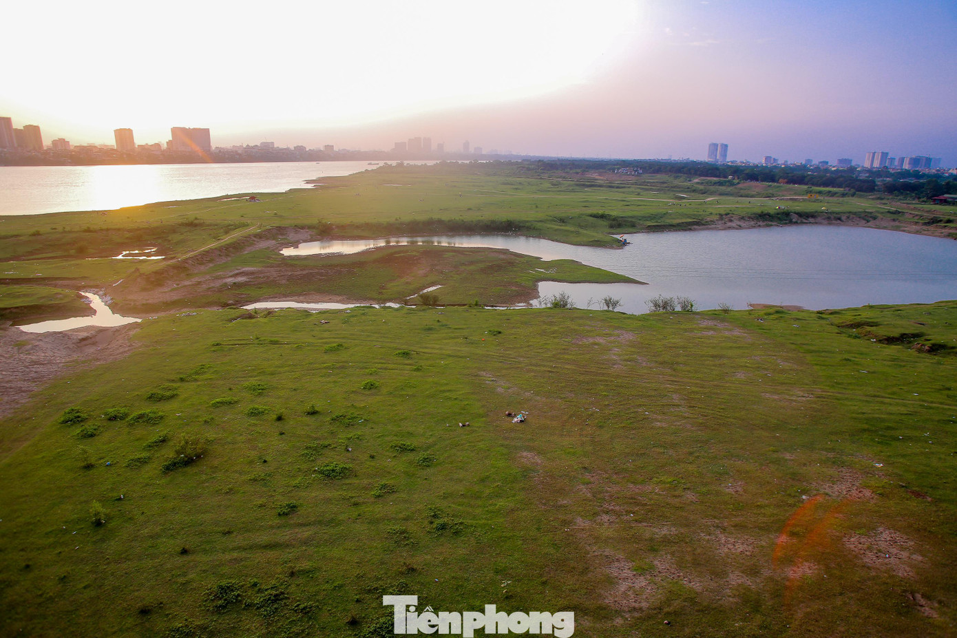 | Bãi bồi chân cầu Vĩnh Tuy vắng lặng trong buổi chiều đầu tiên nghỉ lễ. |