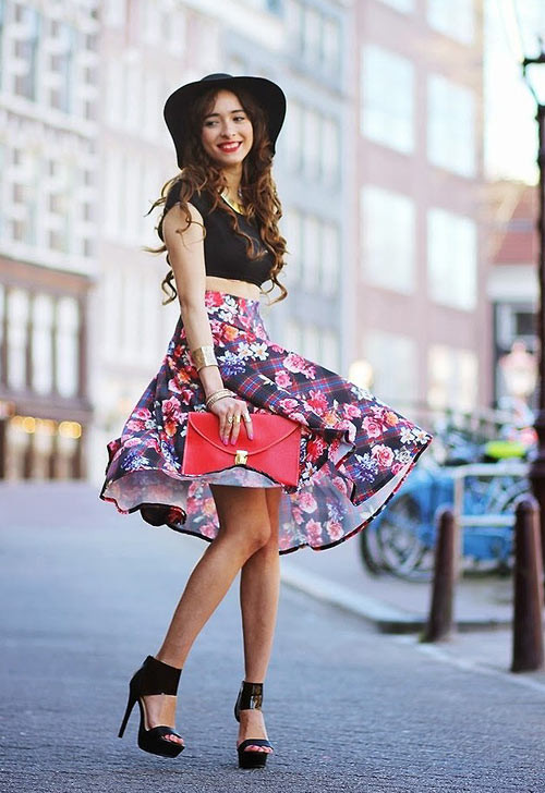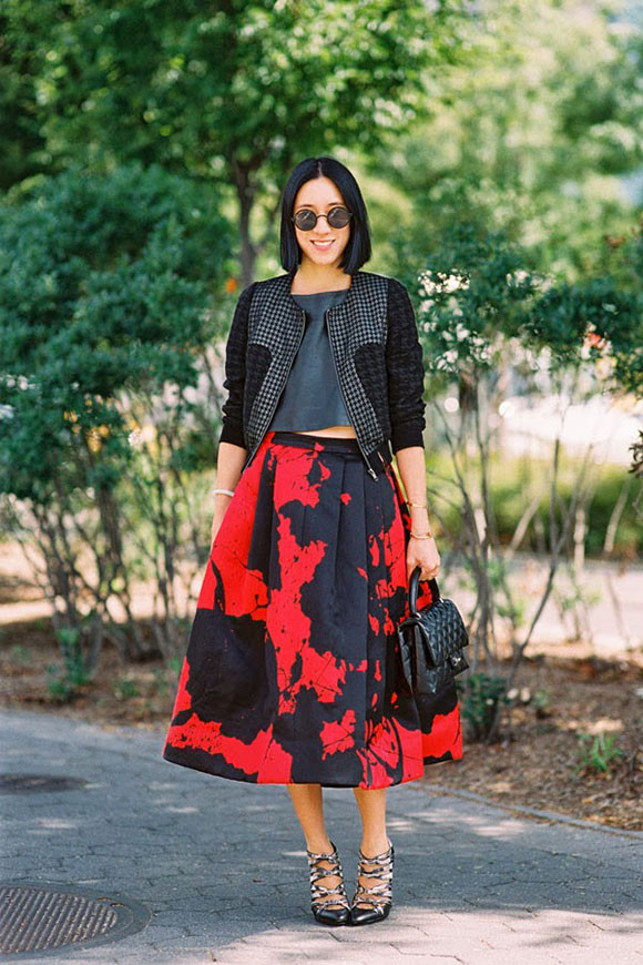 Vì chân váy đã rất nổi bật nên hãy diện phần trên tối giản hết mức có thể. Không diện chân váy xòe với những sáng áo váy quá dài và quá rộng.