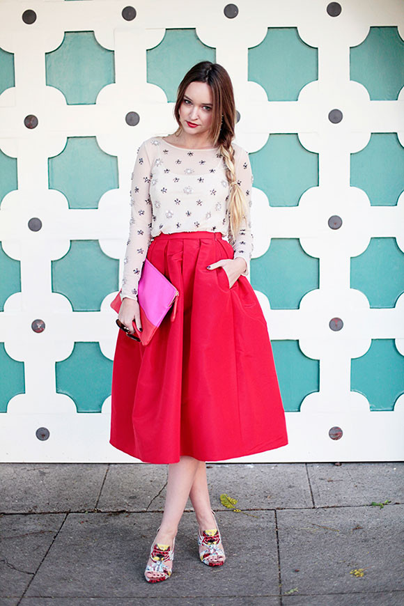Những chiếc chân váy xòe với gam màu bắt mắt như đỏ, cobalt, vàng chanh rất được yêu thích. Để diện chân váy xòe thật đẹp và hợp mốt không hề đơn giản.