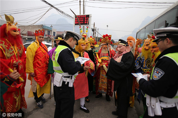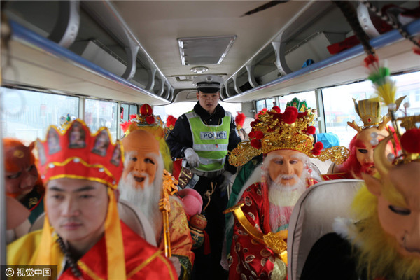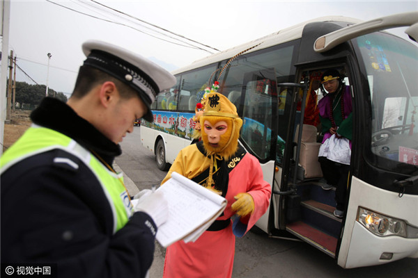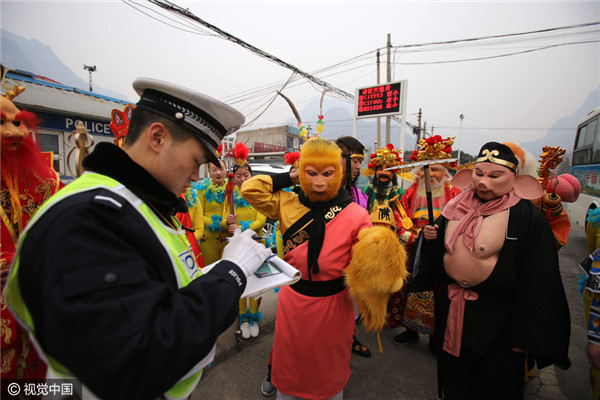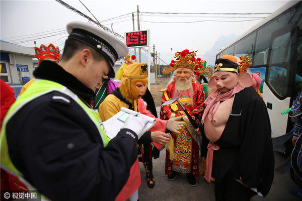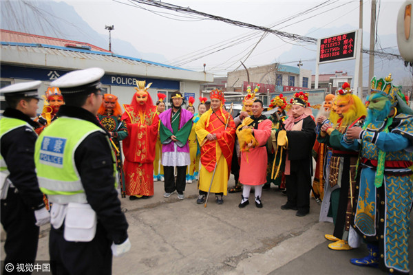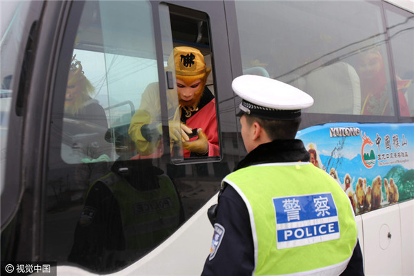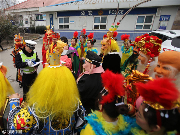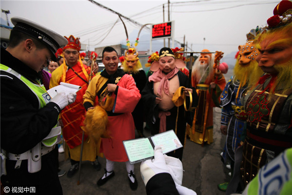 Bước lên xe để kiểm tra, các cảnh sát còn ngạc nhiên hơn khi bắt gặp... thầy trò Đường Tăng cùng Long Vương, Thái Thượng Lão Quân, Thần Tài, Thổ Địa, Ngưu Ma Vương... và nhiều “yêu quái” khác. Tất cả đều là những nhân vật quen thuộc trong “Tây Du Ký”.
