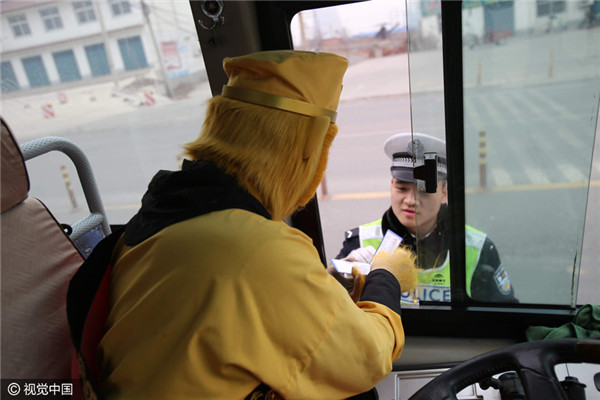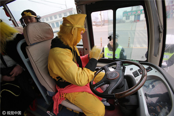 Cụ thể, cảnh sát đã dừng một chiếc xe buýt trên cao tốc để kiểm tra giấy tờ. Tuy nhiên khi tài xế hạ kính xe, các cảnh sát đã không tin vào mắt mình khi thấy người ngồi sau vô lăng là... Tôn Ngộ Không