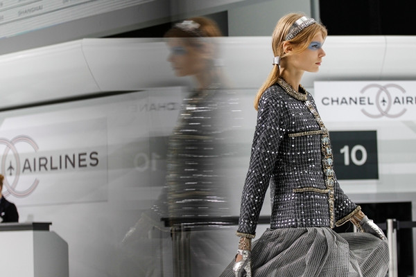 Trong BST Xuân Hè 2016, nhà thiết kế Karl Lagerfeld đã gửi vé cho khách mời với cái tên Chanel Airlines và biến đại sảnh của khu triển lãm Grand Palais (Paris) trở thành nhà ga hàng không Chanel hiện đại.
