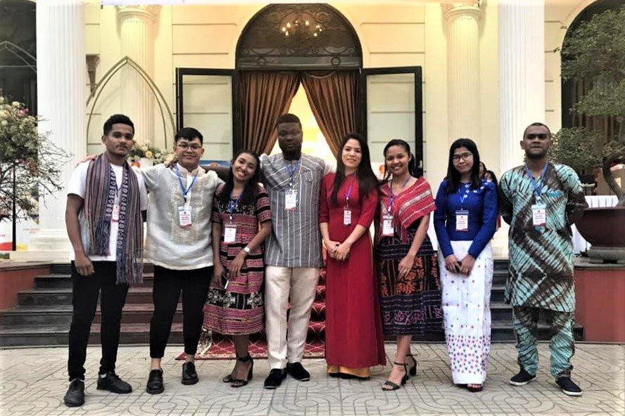 | Jan Aldrick Sales Sendaydiego cùng các bạn du học sinh quốc tế đón Tết tại Việt Nam. |