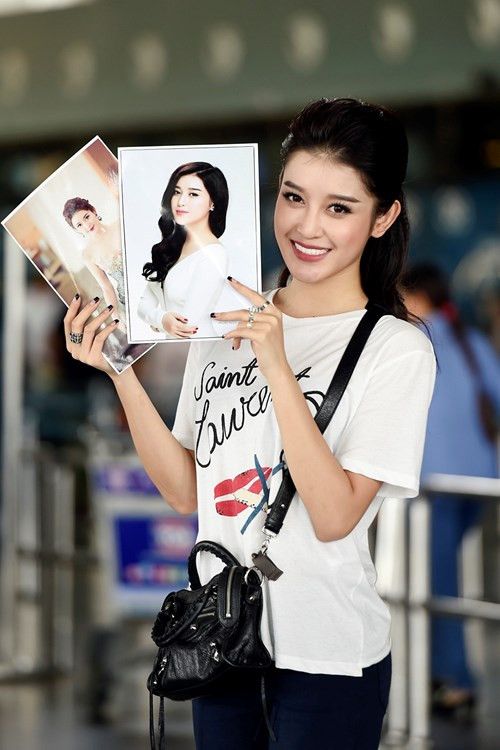 Ngày 5/10, Á hậu Huyền My chính thức lên đường dự thi Hoa hậu Hoà bình thế giới 2017. Cô diện trang phục năng động và trẻ trung ở sân bay.