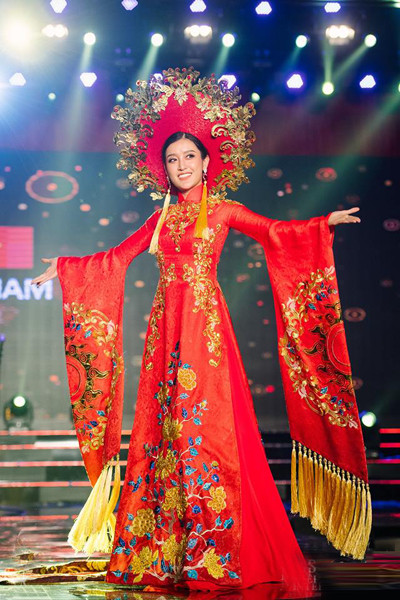 Tối 12/10, Á hậu Huyền My tham gia phần thi trang phục dân tộc. Đại diện Việt Nam, Á hậu Huyền My xuất hiện gần cuối chương trình với chiếc áo dài nặng hơn 30kg của nhà thiết kế Ngô Nhật Huy đã nhận được sự cổ vũ nhiệt tình của khán giả.