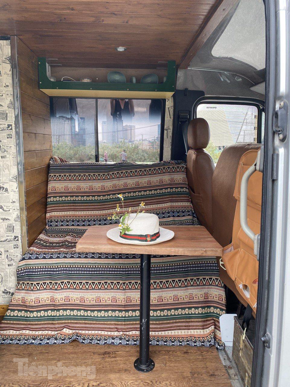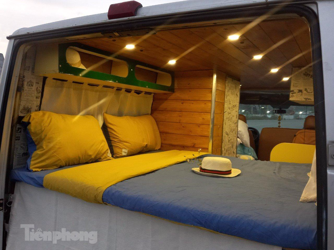 Xe được chia làm ba khu giống như một “căn nhà” thực thụ bao gồm giường nhỏ, giường lớn và khu vực nhà vệ sinh, gian bếp. Ghế sau ghế tài xế được anh “độ lại” để có thể kéo ra tạo thành chiếc giường nhỏ đủ cho 2 con của anh sử dụng. Trong khi đó, phần giường lớn có thể chuyển đổi công năng thành bàn ăn gia đình. Ngoài ra, đây cũng là nơi chứa đồ đạc sinh hoạt, giúp tiết kiệm được lượng lớn không gian trong xe.