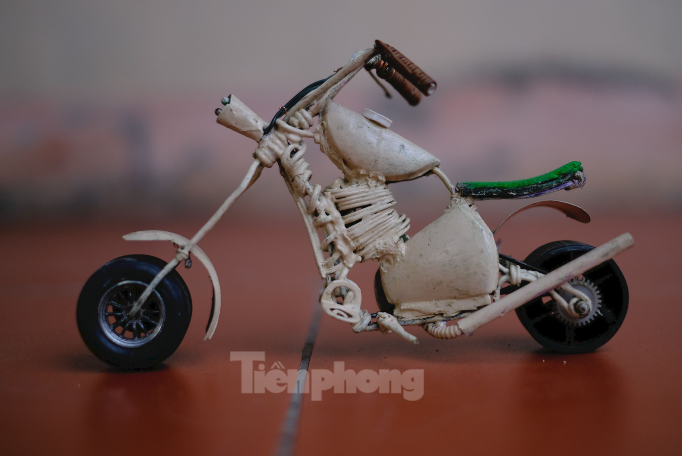 | Những chi tiết trên xe được thực hiện bằng các công đoạn đơn giản và các đồ vật phế thải. Tuy nhiên khi được lắp ráp với nhau, chúng tạo nên một giá trị nghệ thuật đáng quý. |