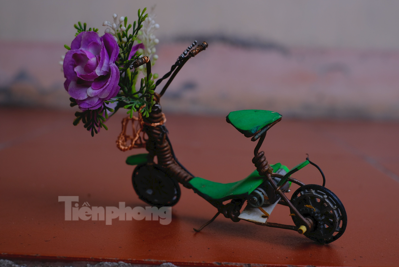 Chiếc mô tô mô hình đầu tiên của anh có chất liệu từ lõi dây điện và các kim loại cũ khác. Những đoạn dây đồng được Giang uốn lại, sử dụng thêm nắp lon bia và bánh xe đồ chơi để tạo hình rồi sơn. Vì là lần đầu tiên nên mọi thứ còn quá mới mẻ với anh. Giang không được ai hướng dẫn mà tự làm nên tất cả thiết kế của sản phẩm này hoàn toàn đến từ óc sáng tạo của chàng thanh niên. Trong quá trình thực hiện, có những lúc tay phải mỏi nhừ, chàng trai trẻ phải dùng cả chân để uốn những phần chất liệu thô ráp. Sau một ngày cần mẫn, anh đã hoàn thành.