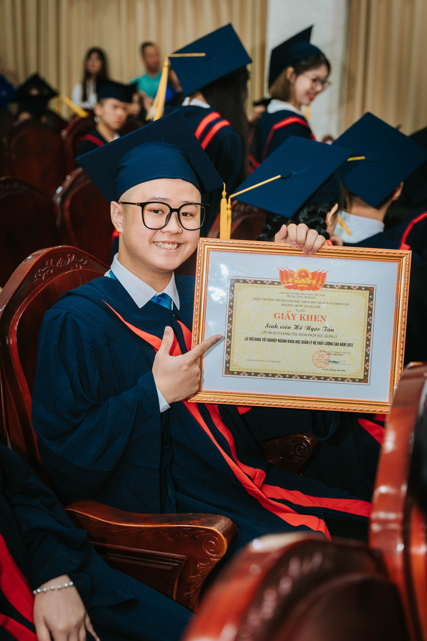| Hồ Ngọc Tân - Thủ khoa đầu ra chương trình Đào tạo Chất lượng Cao TT23 Khoa Khoa học Quản lý, Trường Đại học Khoa học Xã hội và Nhân văn, Đại học Quốc gia Hà Nội. |