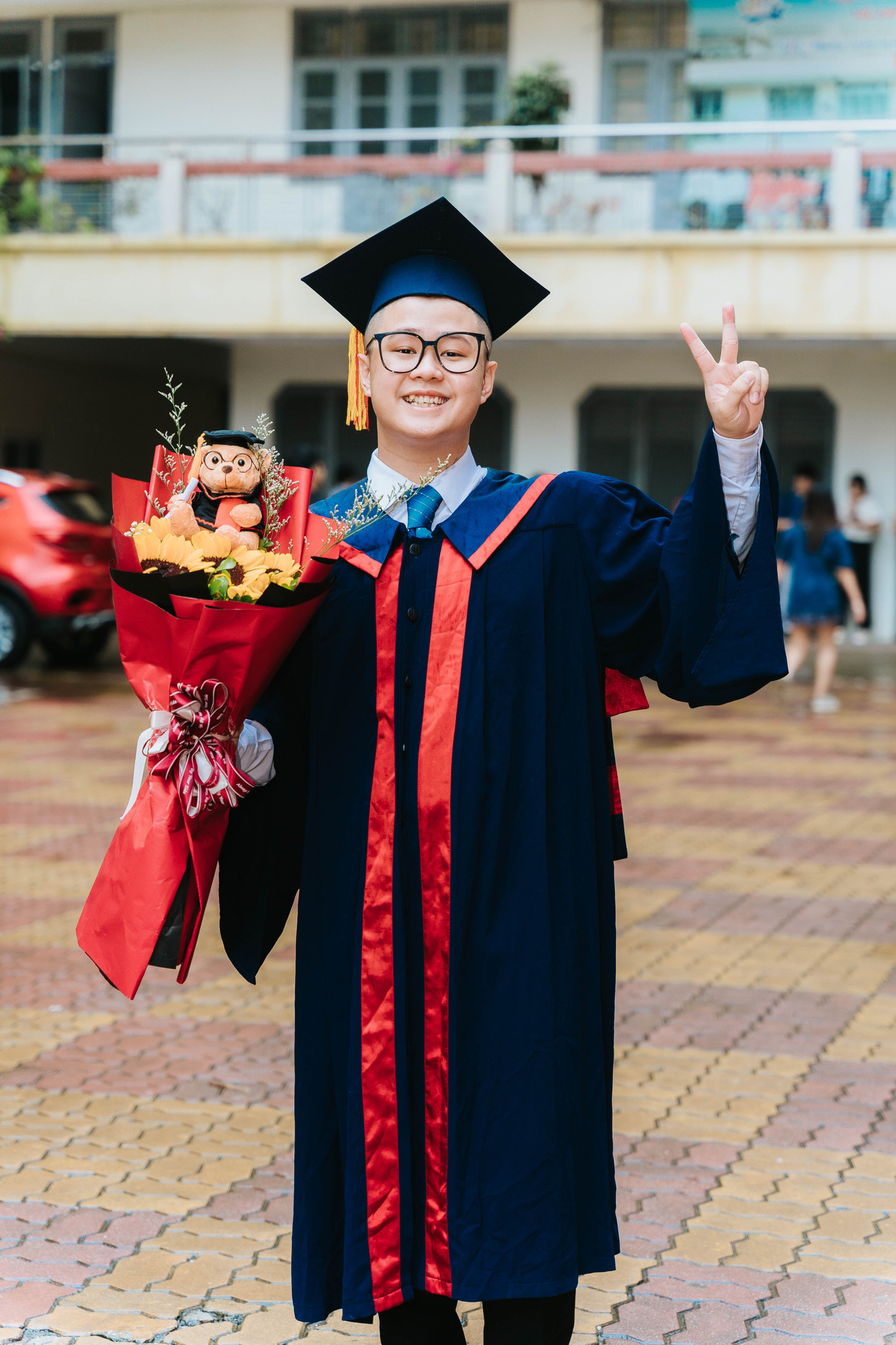 | Ngọc Tân nhận bằng tốt nghiệp xuất sắc trong lễ tốt nghiệp. |