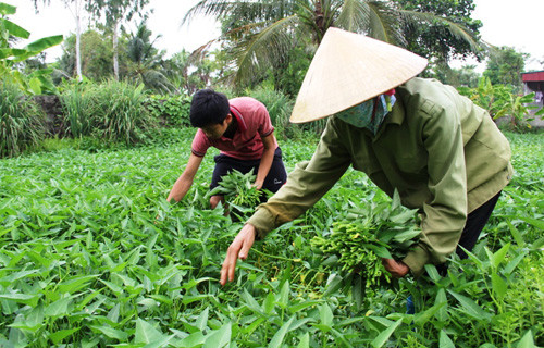 Bình quân mỗi ngày, anh kiếm được 150.000-200.000 đồng tiền công. Còn chị Hiền quanh năm gắn với đồng ruộng. Hết độ mùa màng chị lại quay sang chăm sóc 2 sào đất trồng rau muống. Chiều chiều chị hái rau mang ra chợ bán.