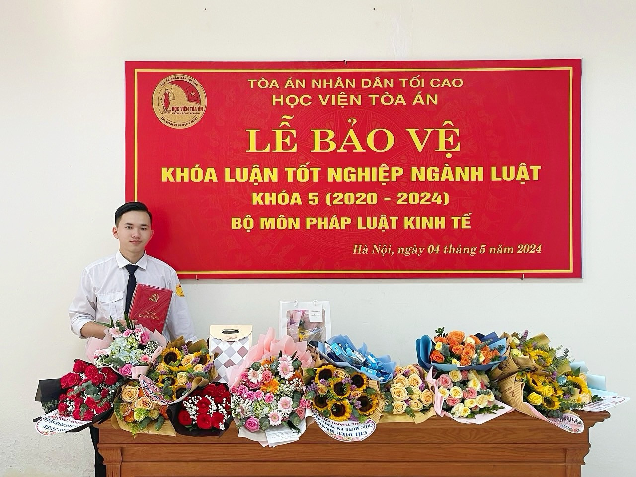 Và cuối cùng, thành quả cho sự miệt mài không ngừng để vượt qua hoàn cảnh của Minh Quân chính là danh hiệu Thủ khoa đầu ra của Học viện Tòa án năm 2024. Khi nhận được kết quả này, chàng trai xúc động chia sẻ: “Bốn năm trước, một mình từ Quảng Bình ra thủ đô Hà Nội để nhập học, mình mang theo ước mơ của bản thân và sự kỳ vọng của bố mẹ, gia đình. Bốn năm sau, với sự nỗ lực và cố gắng không ngừng nghỉ của bản thân, mình chính thức trở thành Thủ khoa Học viện Tòa án năm 2024. Một hành trình dài cố gắng với vô vàn khó khăn đã trải qua, mình thấy đã trưởng thành và học được rất nhiều điều, nó sẽ là hành trang để mình có thể tiến bước xa hơn trong chuyến hành trình sắp tới”