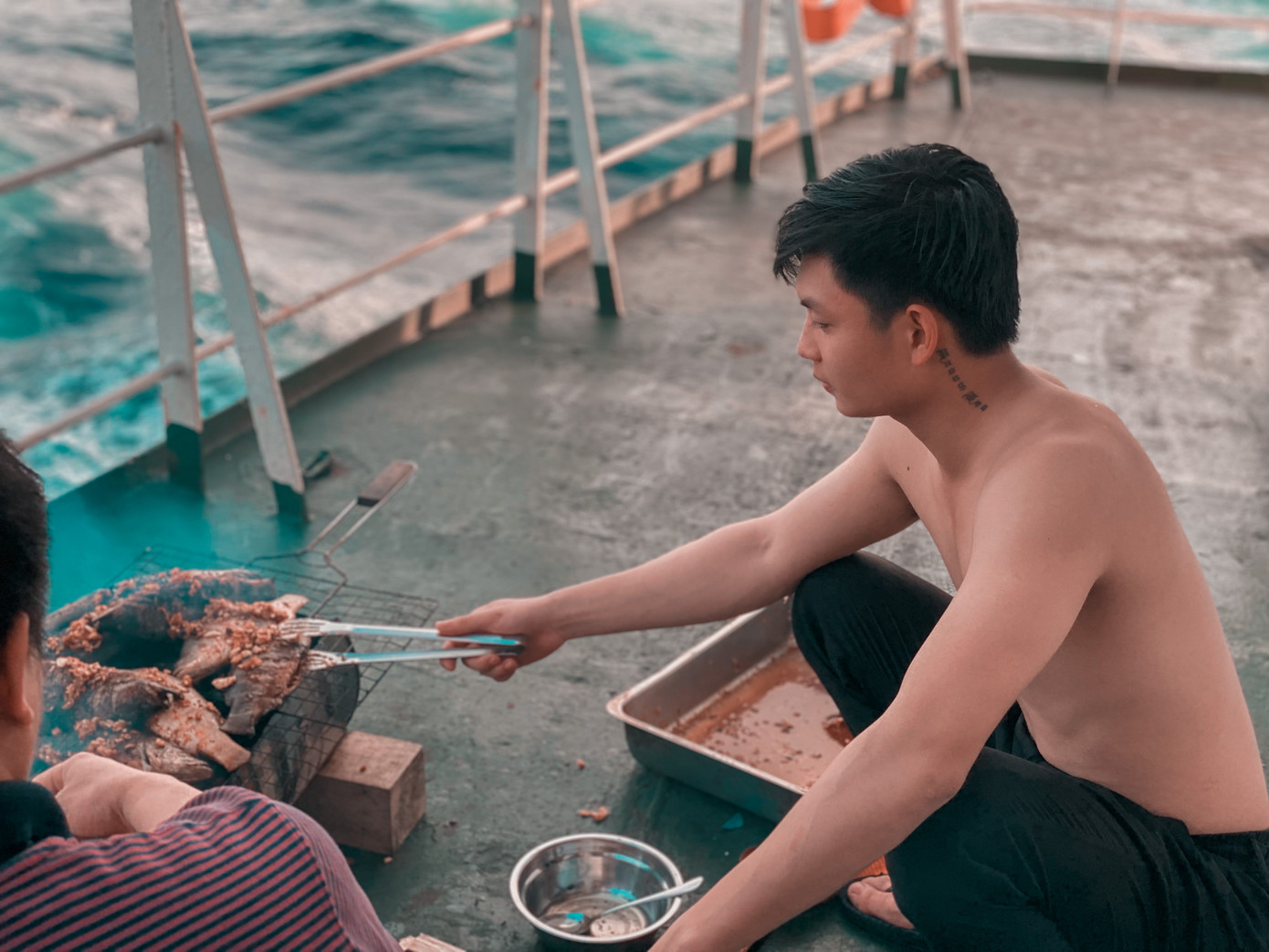 Quốc Bảo chia sẻ: “Là một thủy thủ, vậy nên trong một năm, mình thường sẽ đi tàu từ 10 - 11 tháng và nghỉ ngơi ở nhà khoảng 2 - 3 tháng. Việc thích nghi ngoài khơi là việc ít ai có thể làm được, bản thân mình cũng phải tập làm quen với những con sóng. Mỗi khi đi tàu, việc không có sóng điện thoại và cuộc sống xa nhà trong một quãng thời gian dài là những khó khăn đầu tiên mình gặp phải. Mỗi nơi đều có một bầu không khí hoàn toàn khác nhau, múi giờ sinh hoạt cũng khác nhau khiến cho bản thân mình phải thay đổi thói quen sinh hoạt liên tục. Đặc biệt mỗi lần về nhà, mình phải mất một thời gian để có thể thích nghi lại. Nhưng dần theo thời gian, mình cũng thích nghi và thay đổi, quen với công việc”.