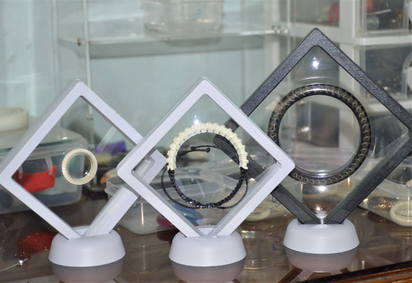 | Quang Nhã làm nhẫn, vòng tay từ xương của rắn. |