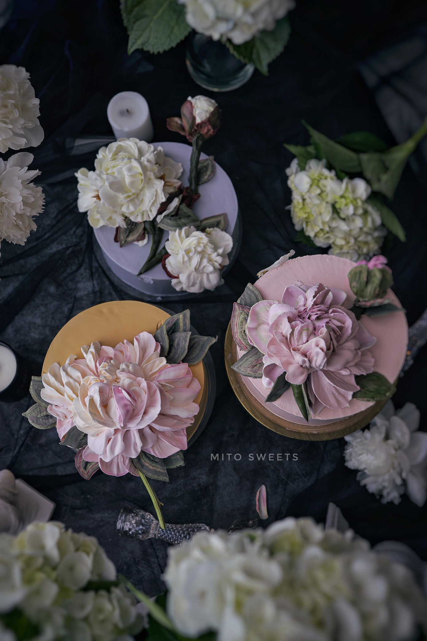| Bộ bánh "Xuân Hạ Thu Đông" được lấy cảm hứng từ hoa mẫu đơn. |