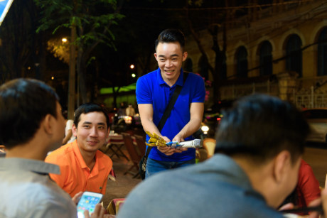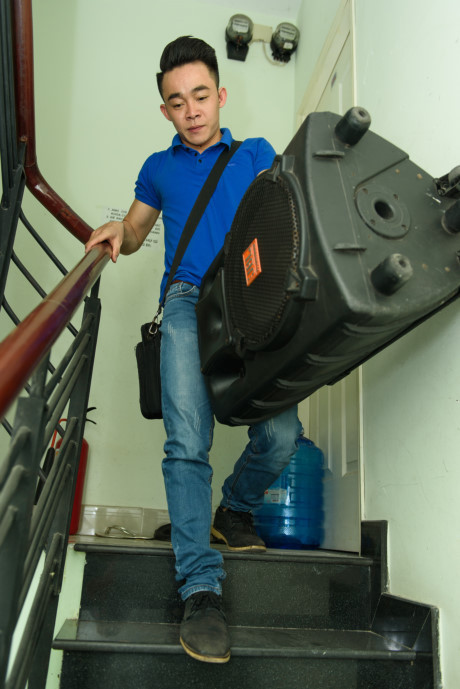 Hàng ngày anh chàng bắt đầu ra khỏi nhà từ lúc chiều tối với chiếc loa của mình để đi hát khắp nơi.