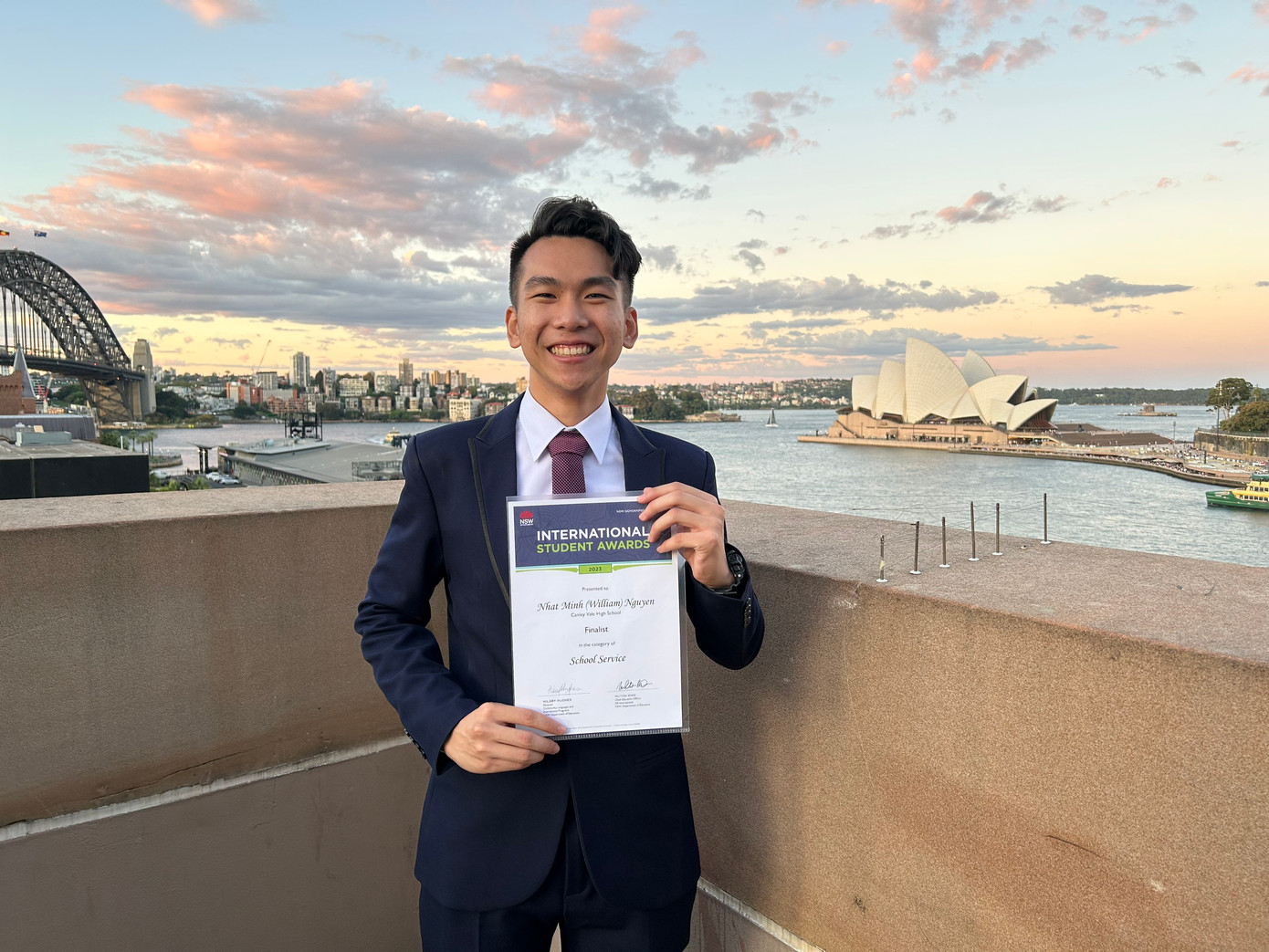 Được Bộ Giáo dục NSW bổ nhiệm làm Đại sứ Du học sinh, đại diện hơn 240 trường công lập trên toàn tiểu bang NSW năm 2023.