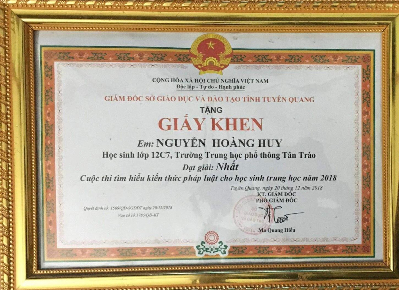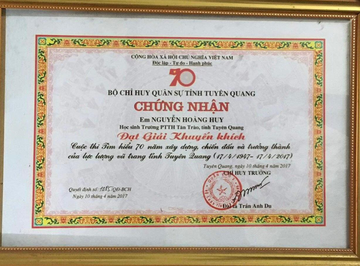 Một số thành tích Hoàng Huy đã đạt được trong 2 năm học vừa qua: