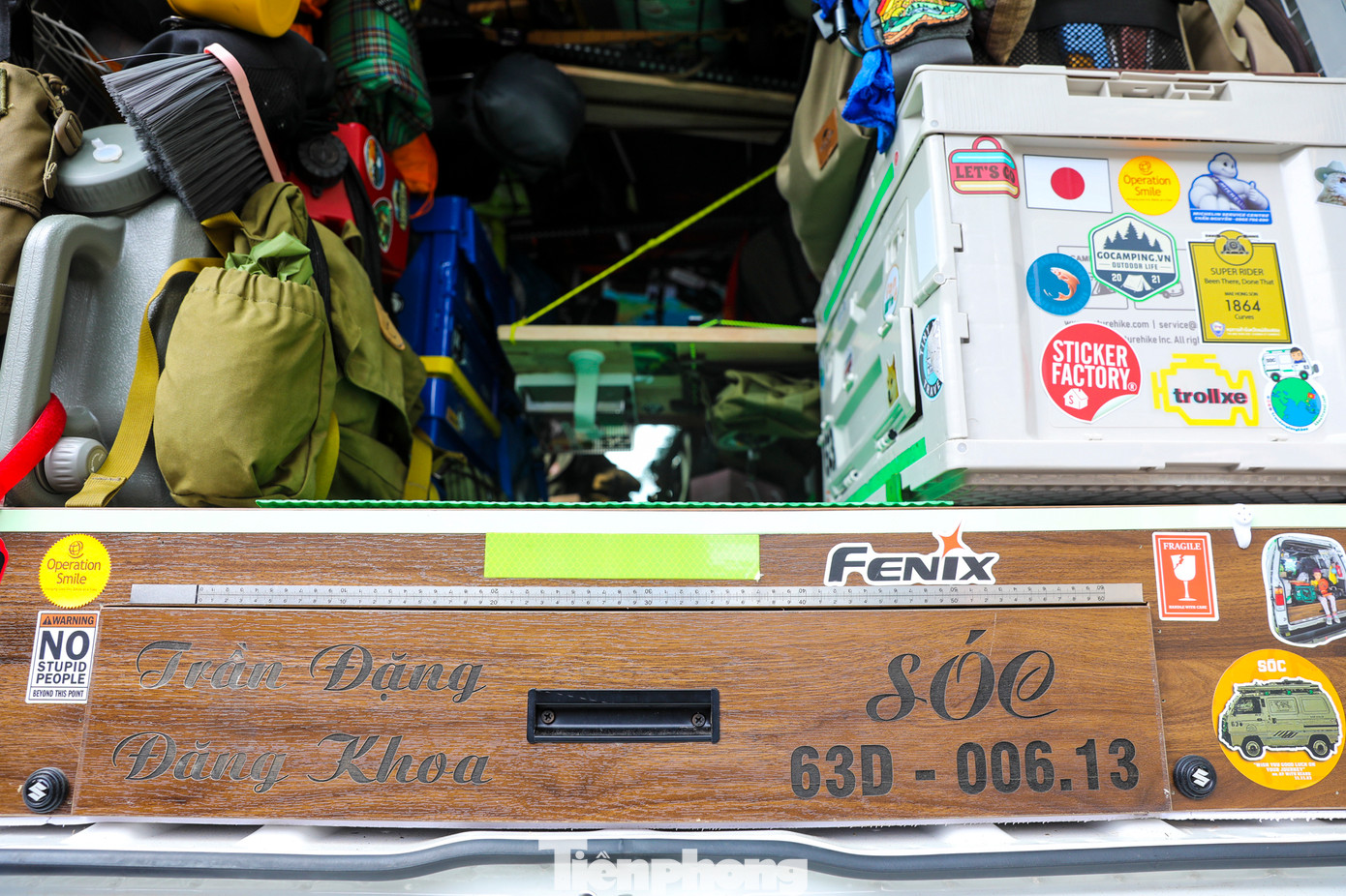 Trên xe có khoảng 300 – 400 món đồ được Khoa phân chia thành nhiều nhóm khác nhau. Gồm có nhóm dùng để sửa xe, cứu hộ, vệ sinh cá nhân, nấu ăn, dự trữ, thiết bị quay phim, y tế, giải trí xuyên suốt cuộc hành trình.