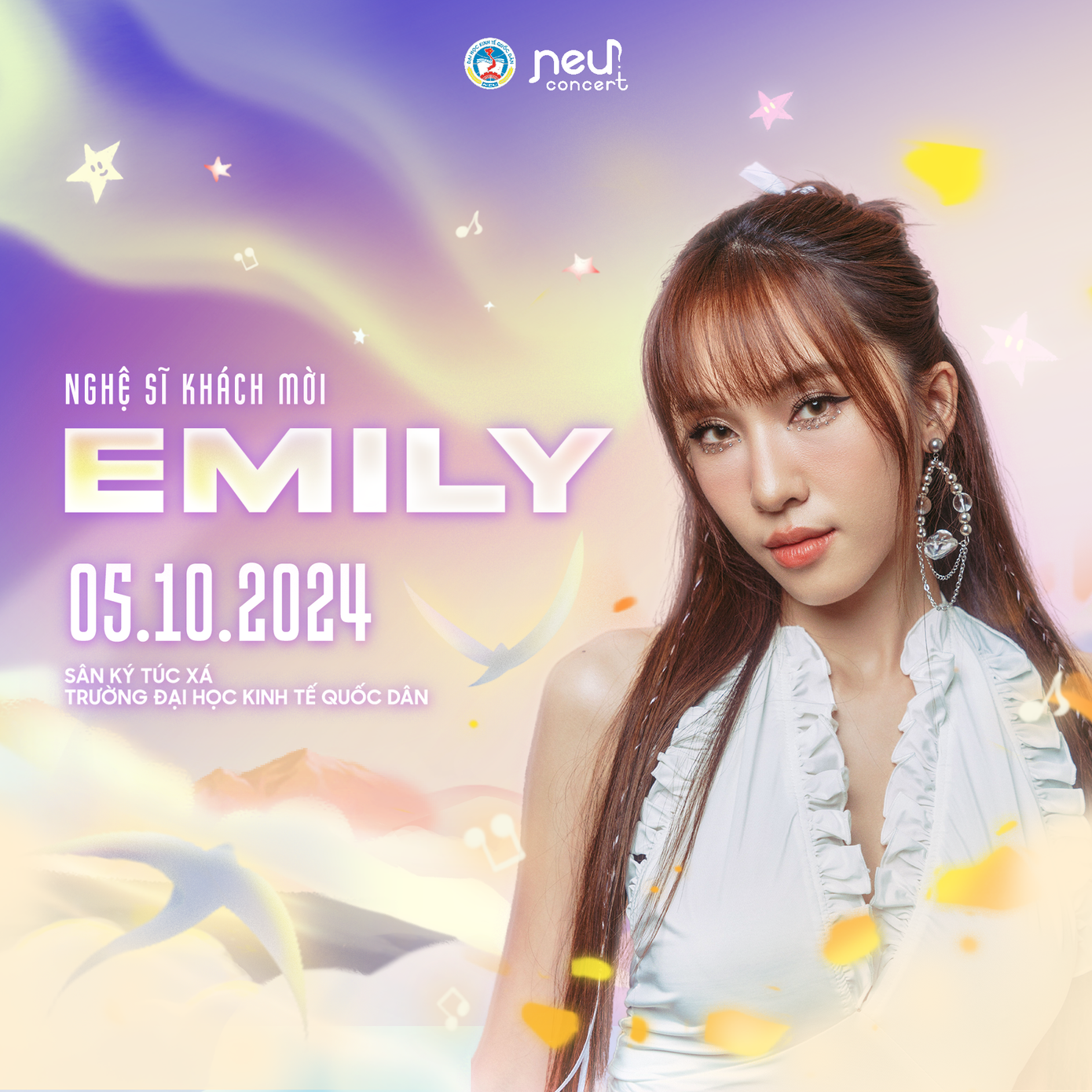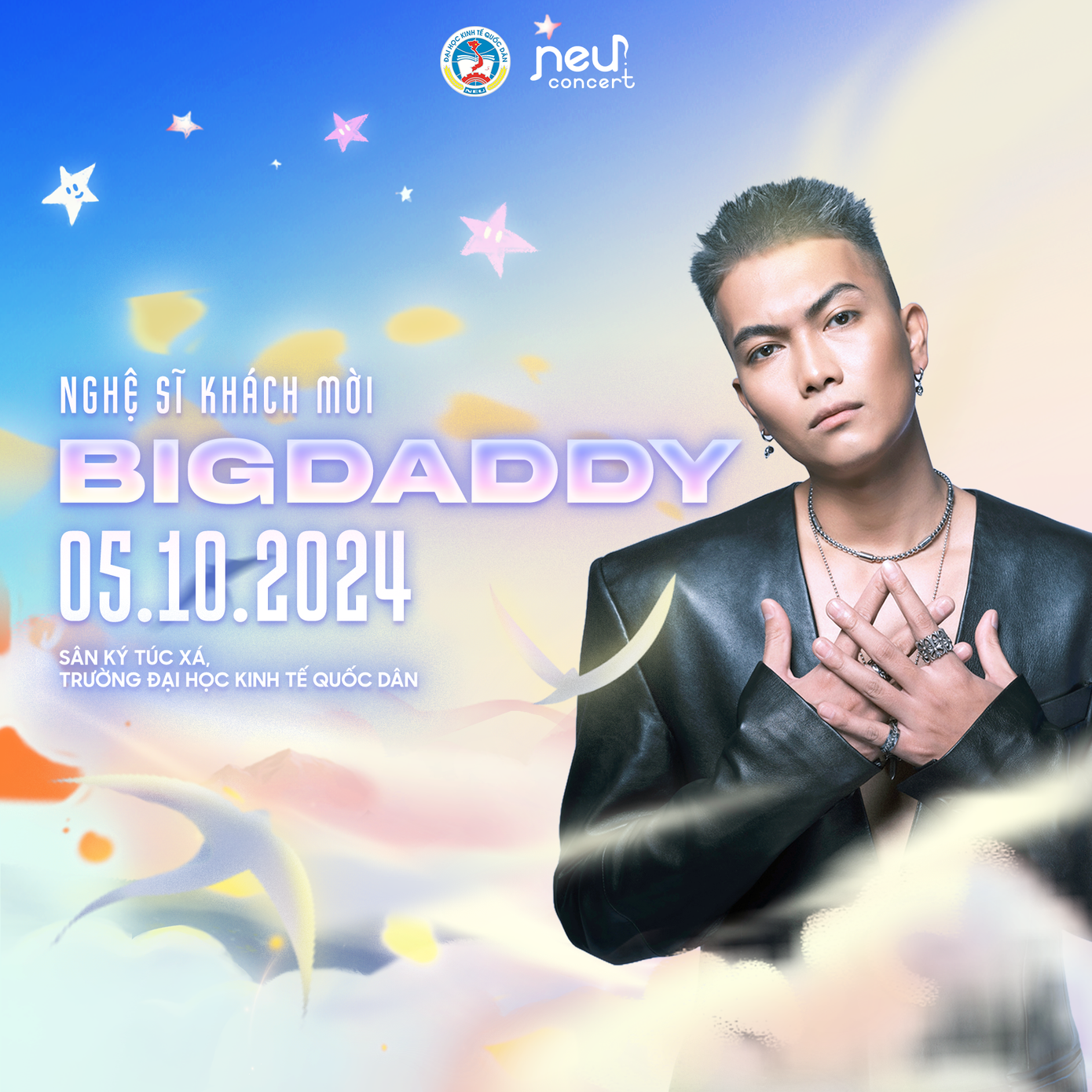 NEU Concert 2024 chắc chắn sẽ là một bữa tiệc âm nhạc hoành tráng khi có sự tham gia của BigDaddy và Emily. Với giọng hát ngọt ngào và rap flow ấn tượng của cặp đôi vàng Vpop, sân khấu NEU sẽ trở nên sôi động hơn bao giờ hết!