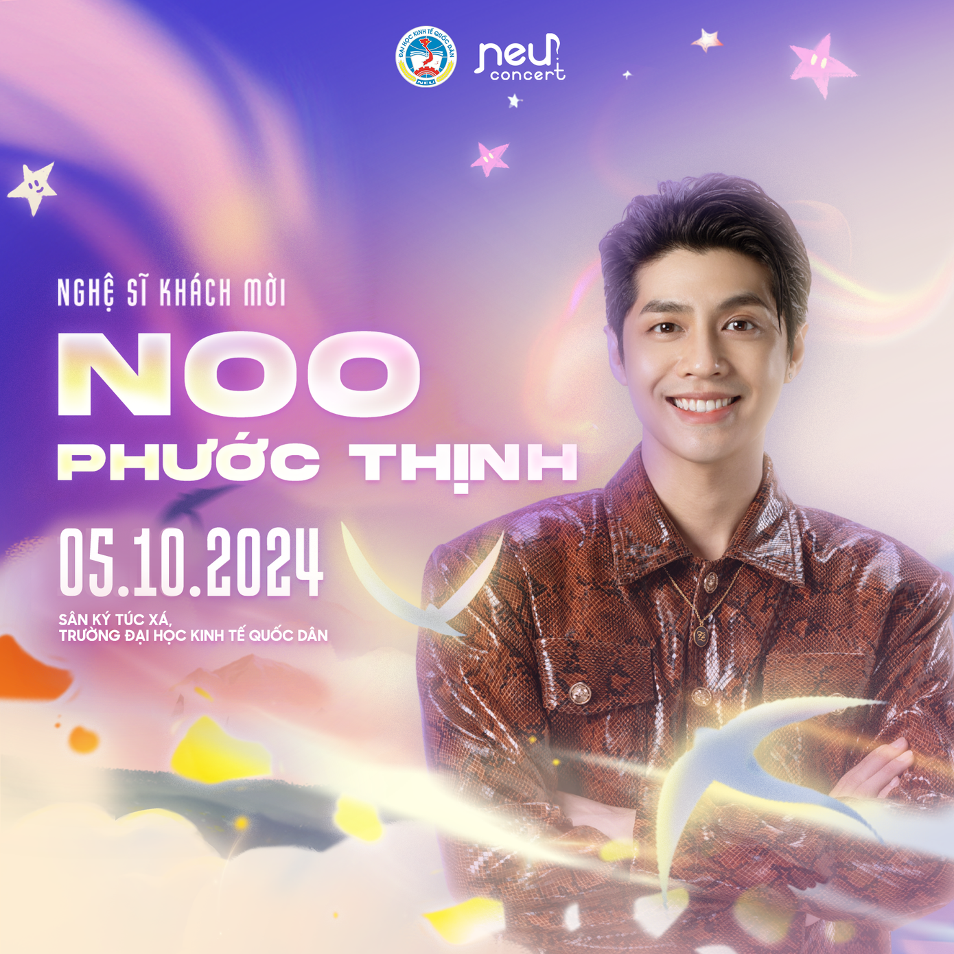 Bên cạnh đó, NEU Concert còn có sự xuất hiện bất ngờ của một cái tên quá đỗi quen thuộc - Noo Phước Thịnh. Được biết đến là "nam thần" của hàng triệu trái tim, cùng giọng hát ngọt ngào, Noo Phước Thịnh đã xây dựng thành công hình ảnh một nghệ sĩ đa năng với nhiều bài hit thuộc các thể loại âm nhạc khác nhau. Việc giọng ca "Chạm Khẽ Tim Anh Một Chút Thôi" góp mặt tại NEU Concert năm nay chắc chắn sẽ khiến các fan không thể ngồi yên, hứa hẹn sẽ làm bùng nổ sân khấu và trở thành khoảnh khắc đáng nhớ nhất của đêm nhạc.