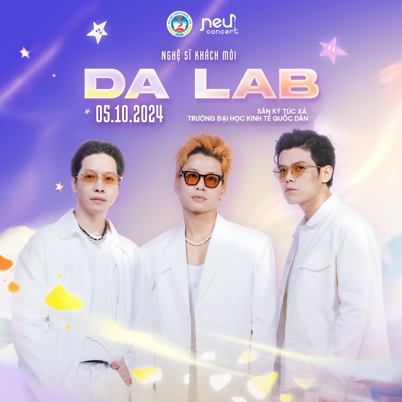 Chưa dừng lại ở con số 7, NEU Concert 2024 sẽ còn bùng nổ hơn nữa với sự góp mặt của Da LAB! Ai đã từng một lần lạc vào thế giới âm nhạc của Da LAB chắc hẳn sẽ không thể nào quên những giai điệu sâu lắng, những ca từ ý nghĩa mà nhóm nhạc mang đến. Còn chần chừ gì nữa, hãy cùng "gác lại âu lo" và hòa mình vào không khí âm nhạc sôi động bên Da LAB vào ngày 05/10 tới đây nhé!