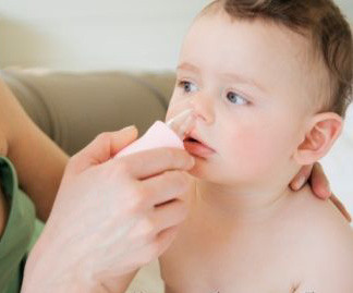 3. Trước khi cho bé đi ngủ, hãy dùng xy-lanh hút sạch mũi cho bé rồi nhỏ vào mỗi bên lỗ mũi một giọt dung dịch muối.