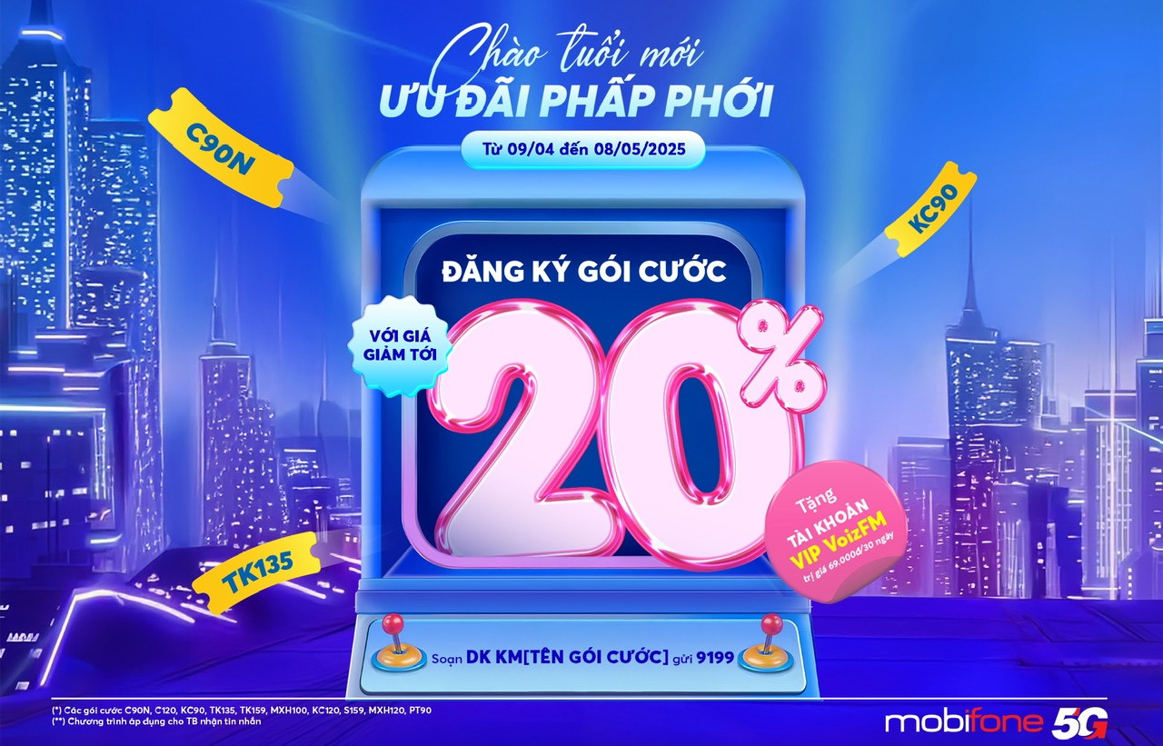 Từ ngày 09/04 đến 08/05, MobiFone triển khai đồng thời 2 chương trình ưu đãi đặc biệt dành riêng cho các thuê bao nhận được tin nhắn, bao gồm ưu đãi giảm giá 20% các gói cước và tặng miễn phí tài khoản VoizFM VIP. Tài khoản VIP VoizFM – nền tảng sách nói hàng đầu tại Việt Nam có giá gốc 99.000 đồng, nay được MobiFone tặng miễn phí cho người dùng sử dụng trong 30 ngày. Đây là món quà tinh thần ý nghĩa, giúp khách hàng thoải mái thư giãn, trau dồi tri thức, khám phá kho tàng sách nói, podcast chuyên sâu về mọi lĩnh vực.
