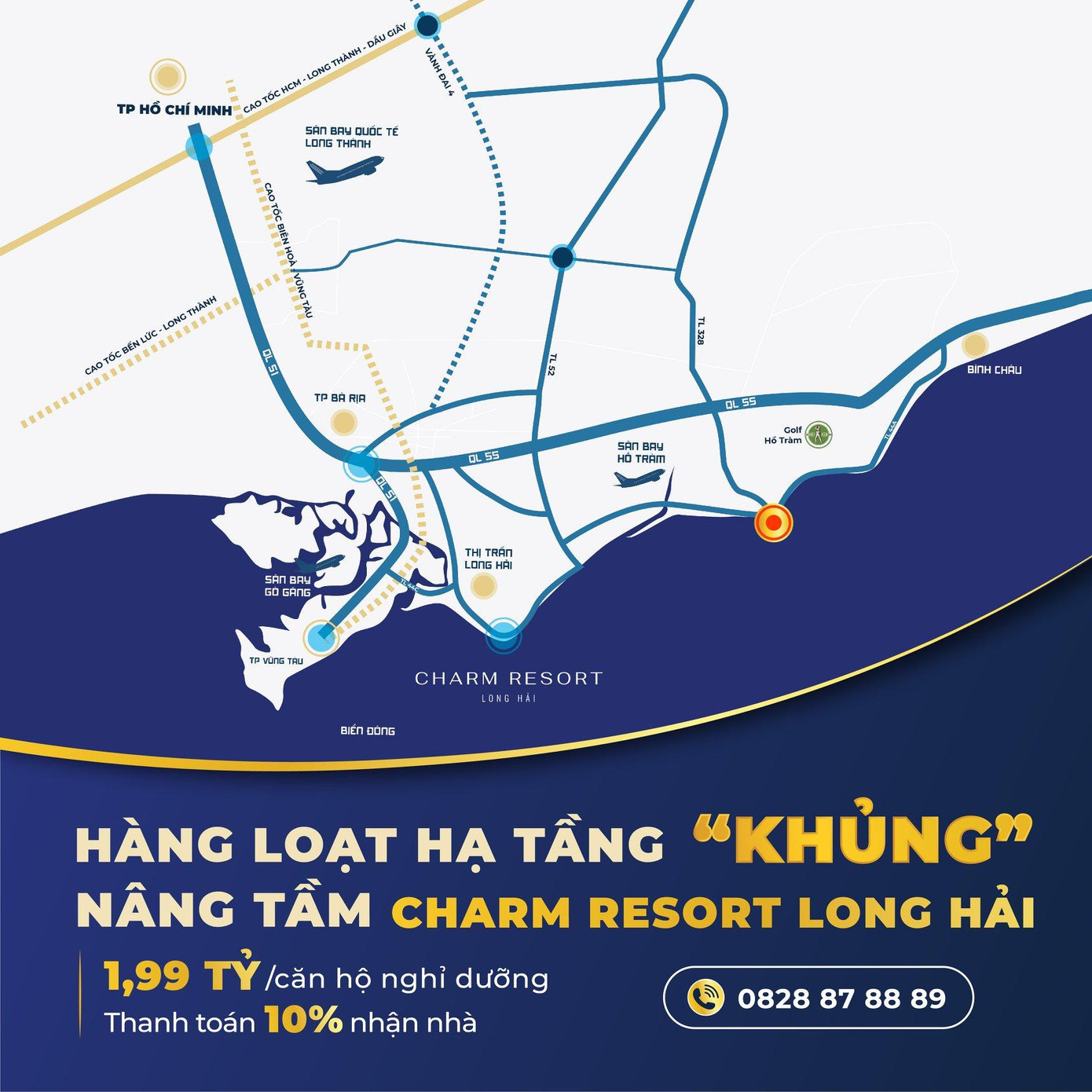 Là dự án nghỉ dưỡng 5 sao duy nhất giữa lòng Long Hải, Charm Resort Long Hải trên diện tích gần 5 ha, dự án có gần 1.000 căn hộ nghỉ dưỡng và 24 căn biệt thự thiết kế phiên bản giới hạn. Mới đây, Resort này đã tạo nên làn sóng quan tâm của giới đầu tư không chỉ vì thiết kế hay tiện ích mà còn vì các phương án tài chính thuận lợi cho nhà đầu tư.