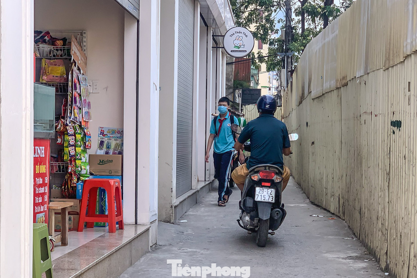 | Lối đi vào trường nhỏ và hẹp, xung quanh là hàng rào tôn. |