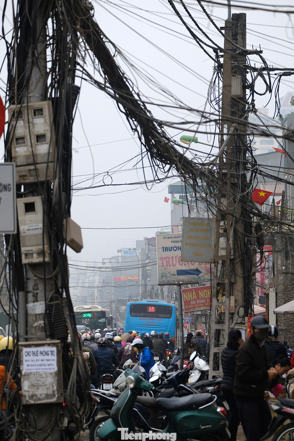 Sáng sớm đầu tuần, dòng phương tiện giao thông ken đặc giữa hàng loạt cột điện và rào chắn.