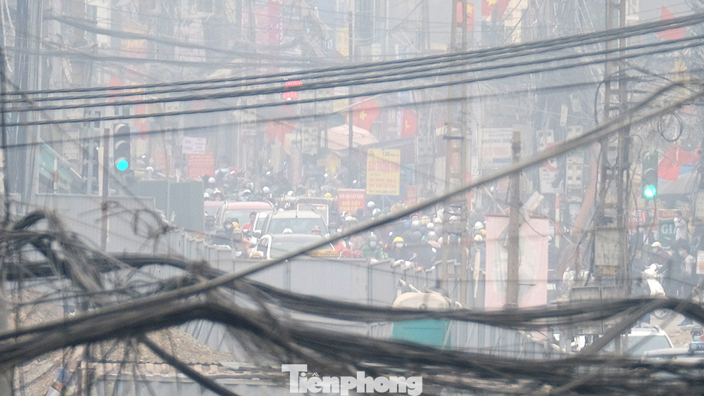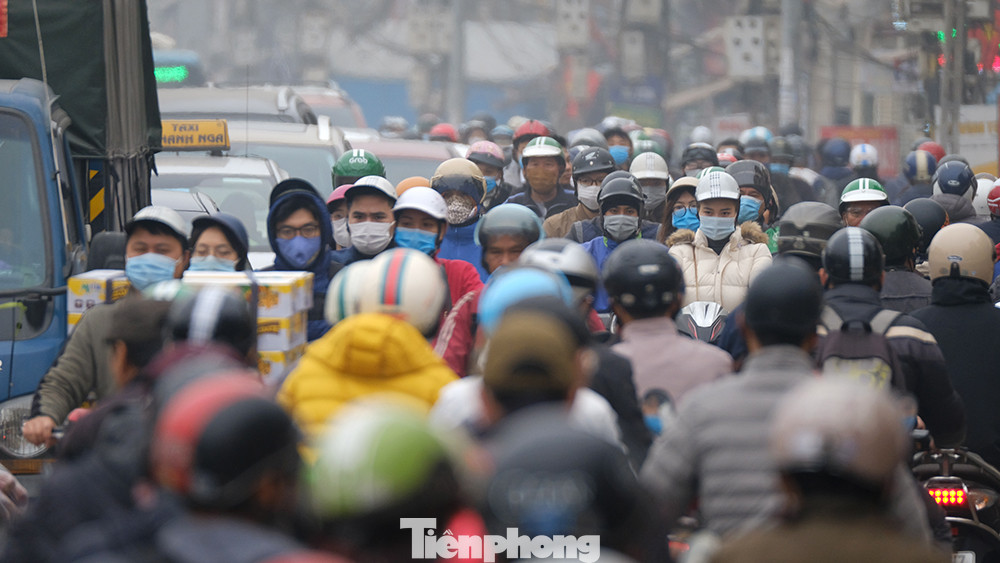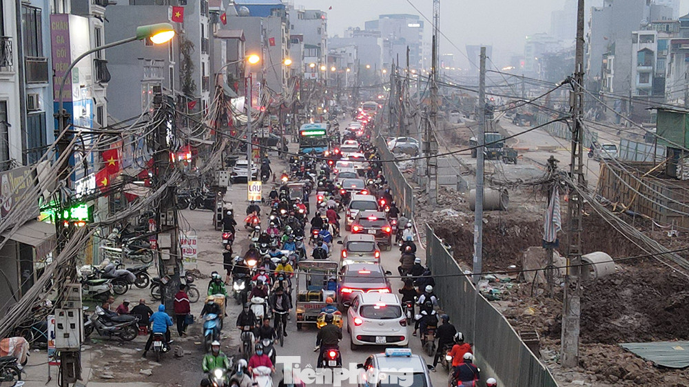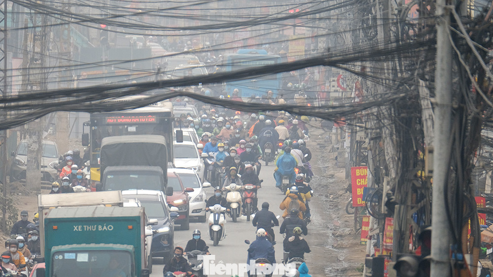 Dòng người, phương tiện giao thông chật vật di chuyển qua đường vành đai 2.