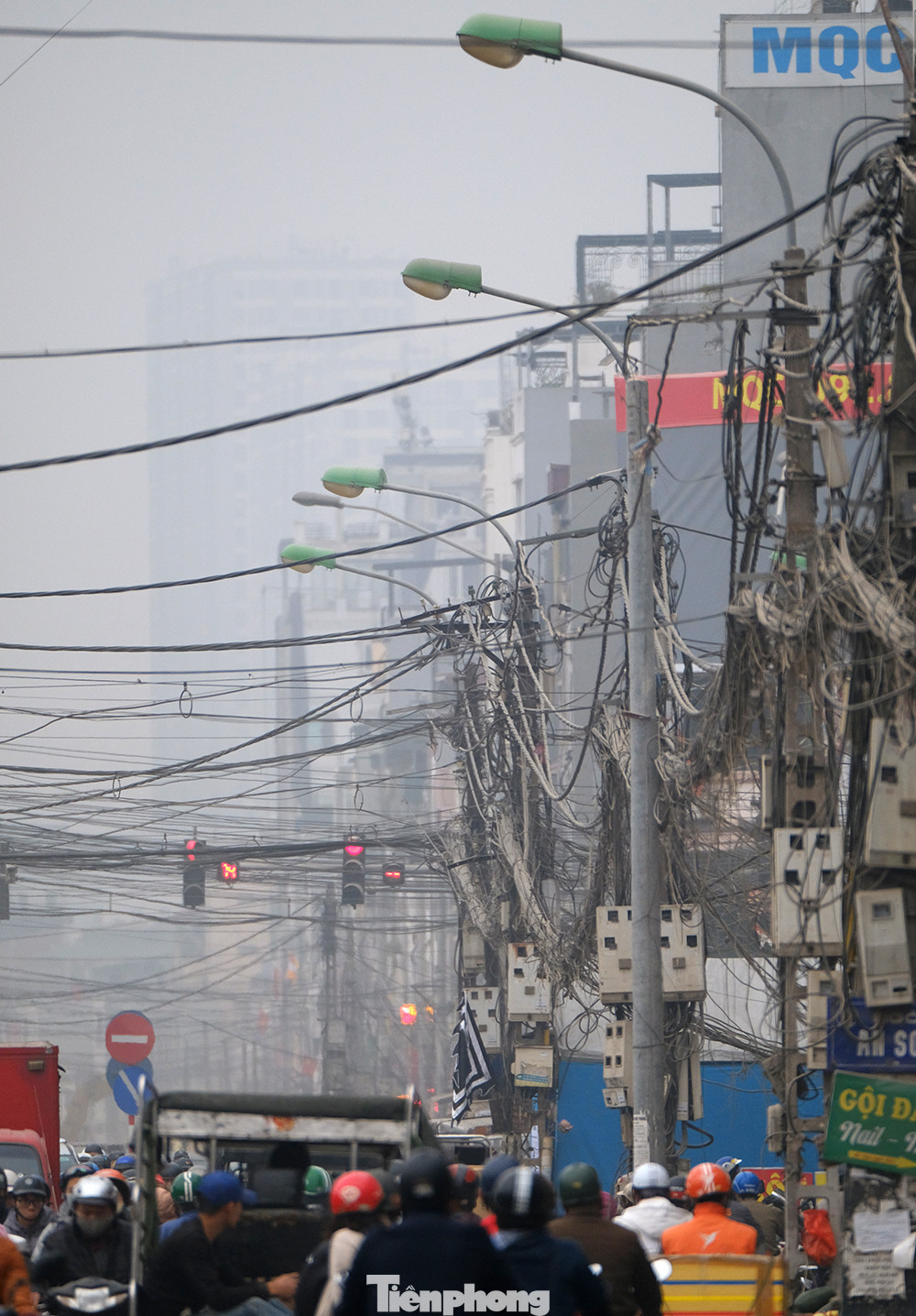 Hệ thống cột điện lộ thiên chạy dọc dự án với dây vây kín như mạng nhện.