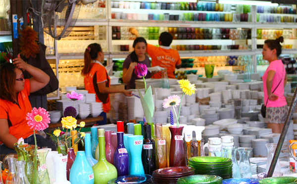 Chợ được chia làm nhiều khu khác nhau, mỗi khu chuyên buôn bán một loại mặt hàng, từ đồ thủ công mỹ nghệ, đồ lưu niệm....