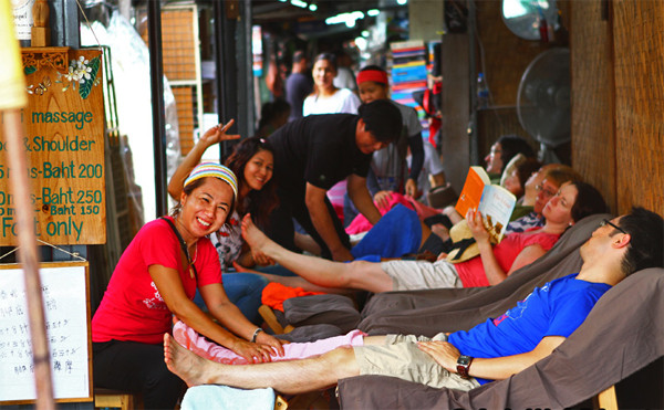 Nhưng đắt khách hơn cả vẫn là dịch vụ massage theo cách truyền thống của người Thái Lan. Có 3 "gói" thời gian massage 30-45-60 phút để bạn chọn lựa, với giá từ 100.000 đến 180.000 đồng