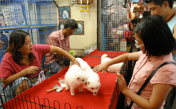 Trong chợ có cả các cửa hàng bán vật nuôi cho khách ngắm nghía và mua sắm.